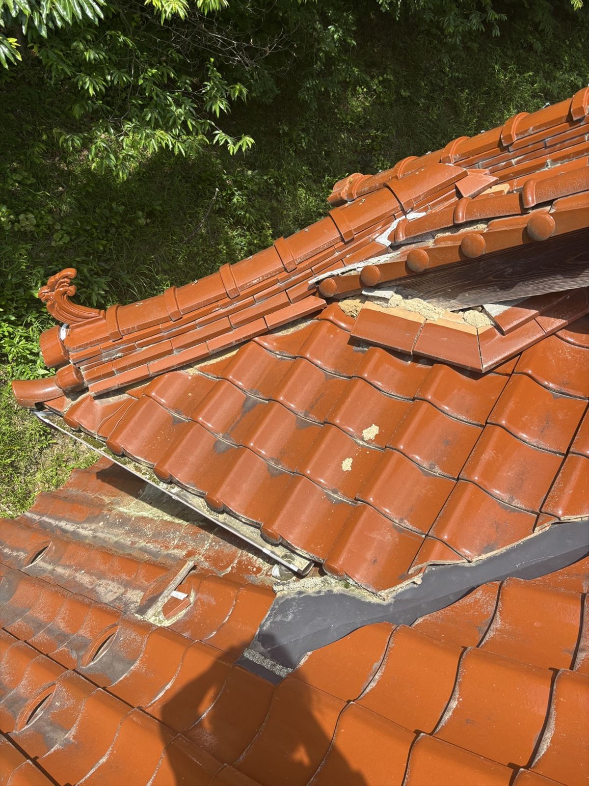 今回は、経年劣化で棟瓦が崩れ落ちそうになっていた棟の巻き替え工事を行いました。