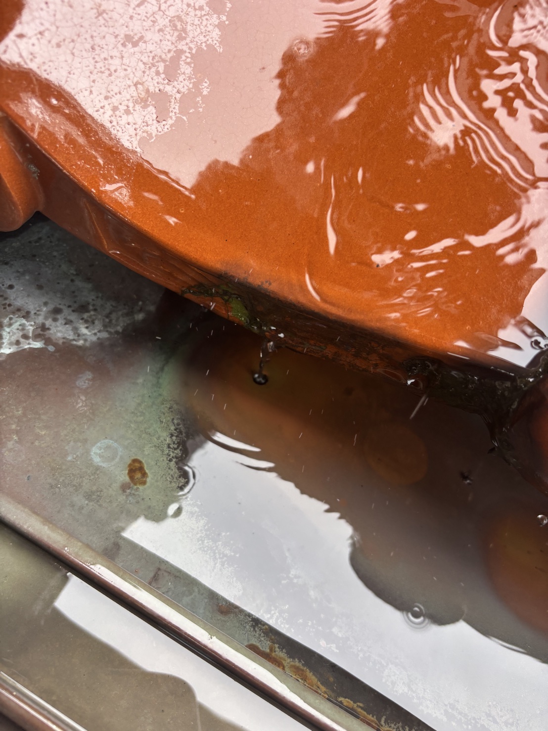 葺き替え前の銅板屋根は、上部の瓦屋根からの雨垂れによる影響で穴が開き、雨漏りが発生している状態でした。銅板は耐久性の高い屋根材ですが、雨垂れが集中する箇所では局所的に腐食が進みやすく、定期的な点検と対策が重要です。